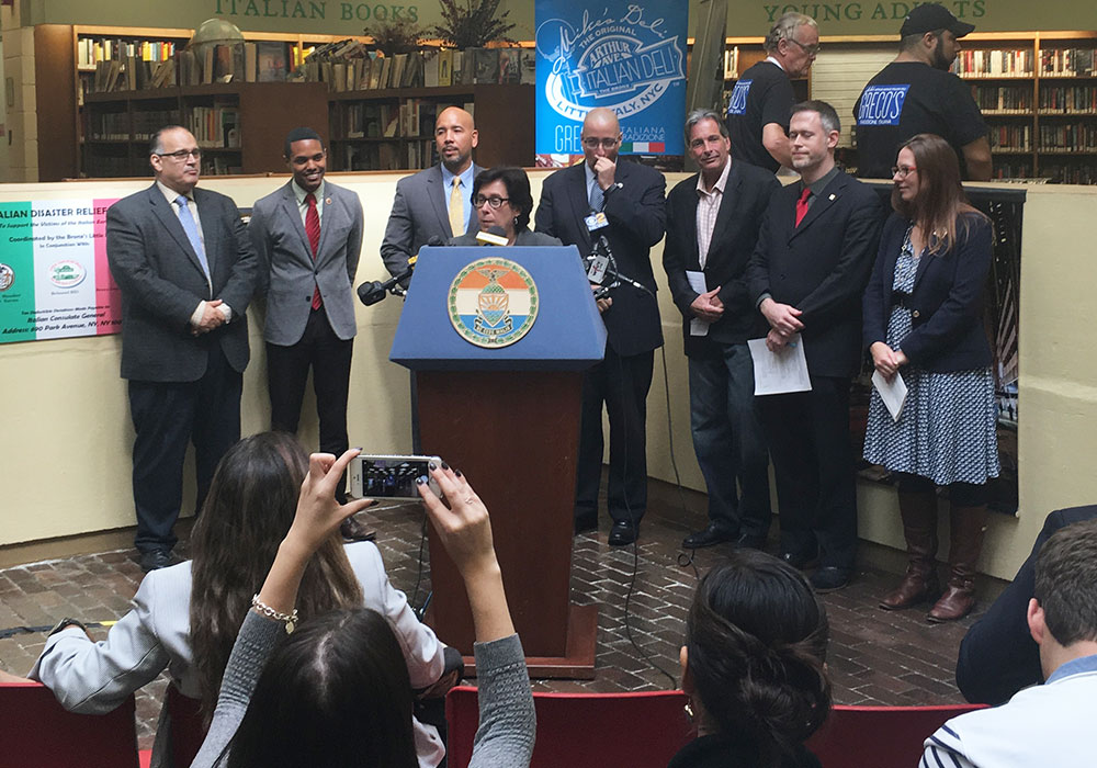 Iris Weinshall, New York Public Library Chief Operating Officer, gibt den Startschuss für das Arthur Avenue Event. Foto von Michael Johnson.
