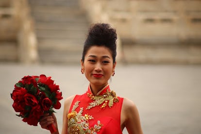Sin embargo, hay algunas bodas en las que sería muy inapropiado vestir de rojo. En lo que respecta a las bodas chinas, la tradición del vestido de novia está muy lejos de la tradición nupcial occidental de vestir de blanco. La novia Connie, que publicó su boda en el popular blog de bodas Love My Dress, dijo: «Es tradicional que las novias chinas se vistan de rojo, pero pensé que el vestido de novia tradicional chino, que es rojo y está cubierto de bordados dorados y plateados, sería demasiado. El estilo de vestido rojo que llevé se llama ‘Qi Pao’ o ‘Cheongsam'». Según la cultura china, el rojo simboliza la felicidad y la buena fortuna, por lo que tiene sentido que las novias que celebran una boda tradicional china vistan de rojo. Por lo tanto, si vas a asistir a una boda tradicional china en un futuro próximo, es posible que quieras evitar vestir de rojo. A menos, por supuesto, que los novios deseen que todo el mundo se vista de rojo, para que les traiga mucha buena suerte.
