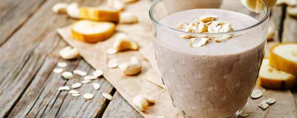 Una buena opción como batido para después del gimnasio o como alternativa al desayuno, este batido contiene plátano, además de anacardo, avena y leche de avellana.